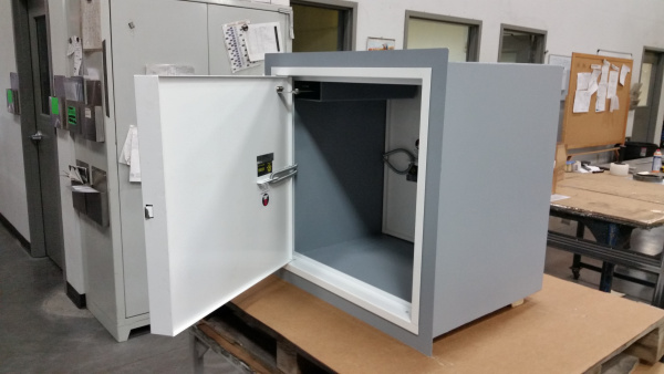 Fasco high security pass thru products are built in a 36” wide x 60” deep x 60” high standard size and feature powder coated finish cold rolled steel construction. Custom options are also available, and they include:- All stainless steel construction
